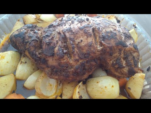 نحضر طبق ونحط الزيت عشان الخلطة تمسك فى الصدر الرومى ونحط الصلصة والتوابل ونقلبها كويس ونضفها على الصدر الرومى ونغطيه كله بالتتبيلة كويس اوى وبعد كده نحط فيه الحبهان وورق اللورا ونغطيه ونحطه فى التلاجه ليله وتانى يوم نجيب صينية ونحط فيها بطاطس وجزر وبصل ونقبها بملح وفلفل ونحضر طاسة فيها سمنه او زبده عالنار تسخن كويس اوى ونحط الصدر الرومى ونديله صدمه من كل الجناب كويس ونحطه فى الصينية على الخضار ونحطه فى الفرن هو هينزل ميه وهيستوى منها كويس ونفتح الشواية وناكل بالف هنا